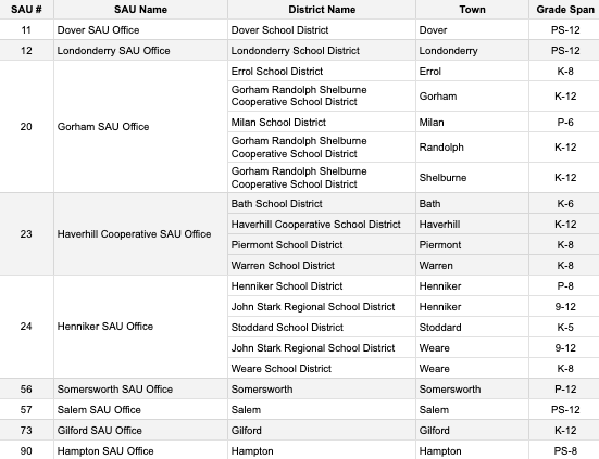 This initiative brings together 10 School Administrative Units (SAUs) representing 21 towns and cities across New Hampshire. Together, these communities reflect the geographic and demographic diversity of our state — rural, suburban, and urban — and will serve as a sustained source of insight, experience, and leadership in statewide education conversations.